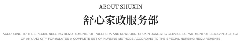 關(guān)于我們 產(chǎn)婦服務(wù) 新生兒護(hù)理 育嬰服務(wù) 月嫂培訓(xùn) 催乳師培訓(xùn) 舒心家政 月子餐 資質(zhì)榮譽(yù) 服務(wù)案例